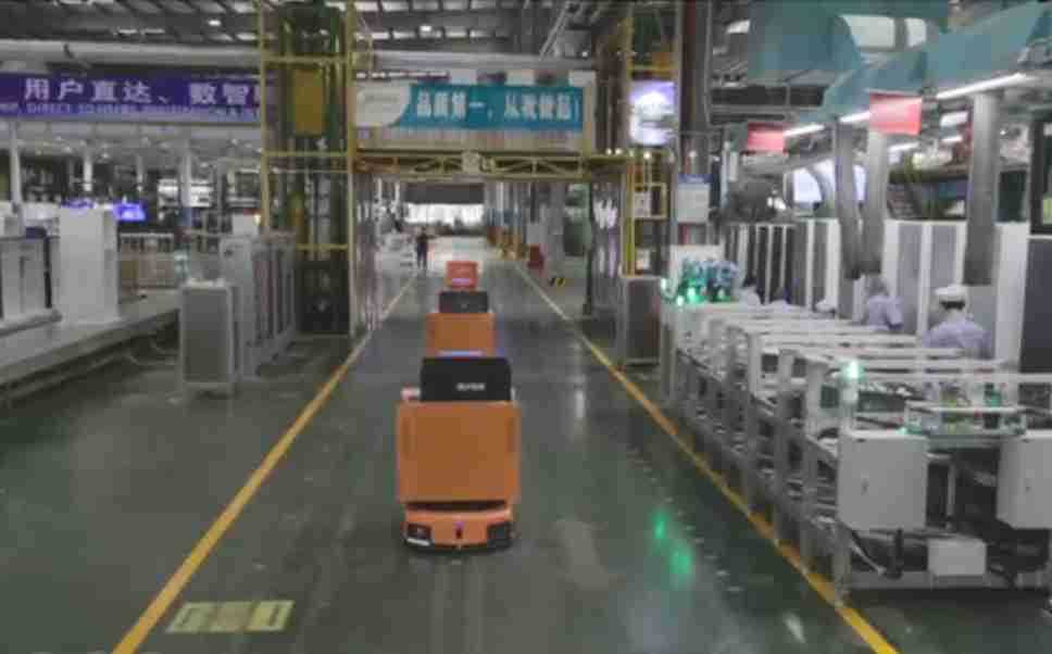 为车载冰箱物流配送打造的智能解决方案,,,包含产中物流通过潜伏举升AMR搬运至线边,,,,产后成品物流智能仓储,,流程包含产中物流智能齐套入库,,,线边安灯叫料AMR智能配送至线边,,,,成品入库、、、、出库,,,通过无人堆高车机器人,,,,智能仓储管理替代人工作业管理,,,,实现更高存储、、、更高效率、、、、更具柔性化的解决方案。。。